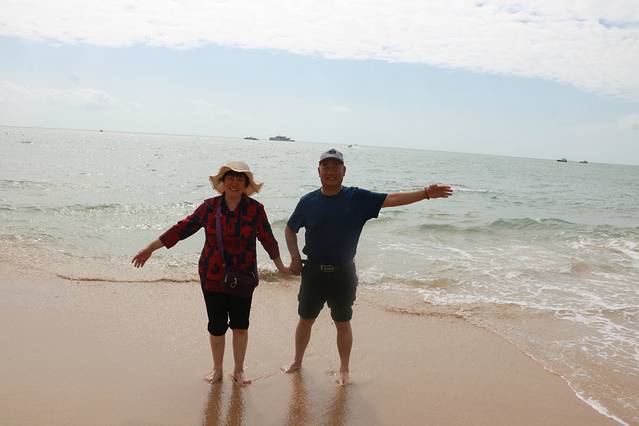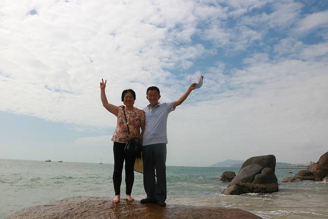 原来几天我爸妈是不脱鞋进海里的,那天两人兴致来了,牵手进海里了,也是三亚之行唯一的一次。