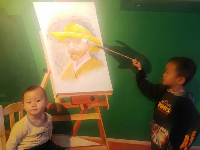 一路走一路向路人询问,终于到了梵高星空艺术馆,接着,孩子们都玩疯了。真的特别适合带孩子去玩儿,其中我儿子不小心把一个灯给拽下来了,里面的工作人员也没埋怨也没给脸色,直接就拿走了,态度也是非常好了。