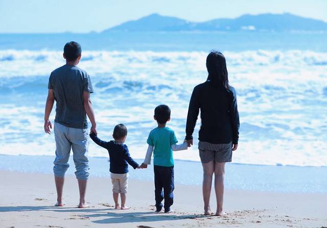 蜈支洲岛归来,四位长辈带着孩子们下楼自由活动。他们去了楼下50米开外的海边。