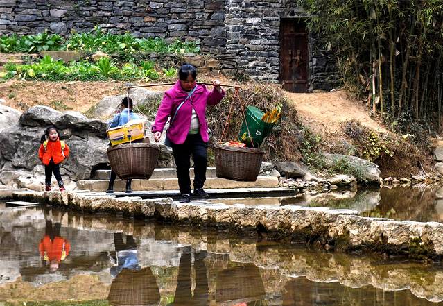 看到当地的村民频繁的往来于这座古桥,挑着箩筐,里面有食材和生活里需要的日用品,这给这座古桥增添了生活气息和人间烟火味。