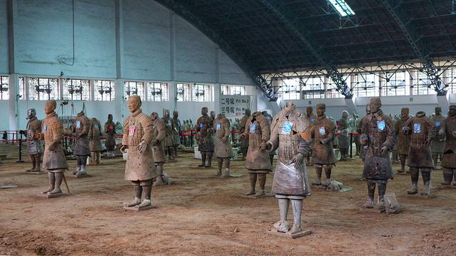 兵马俑是1974年3月发现的,当地农民在一片砂石堆积、墓冢累累的荒野上挖井时偶然发现了一些陶俑残片。后经考古工作者一年多的精心勘探和试掘,发现是座规模宏伟的大型兵马俑坑(即一号俑坑),里面埋藏着和真人、真马大小相似的陶俑、陶马约6000件。