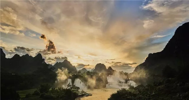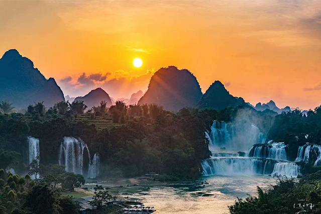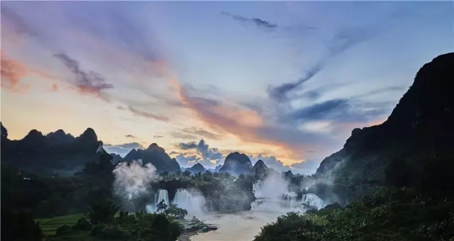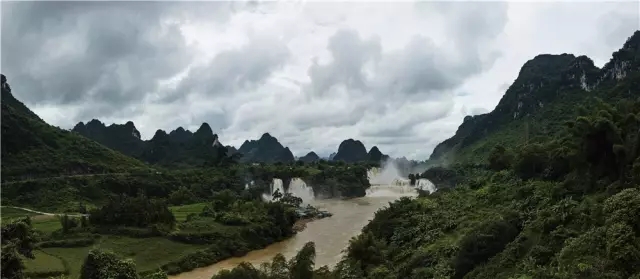 德天瀑布与越南的板约瀑布连为一体,就像一对亲密的姐妹,袅袅婷婷,携手而立。