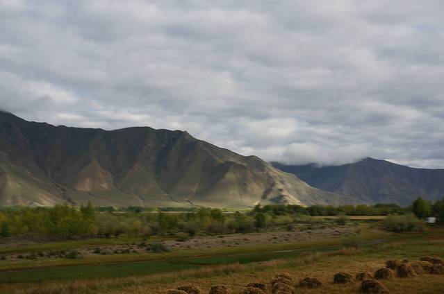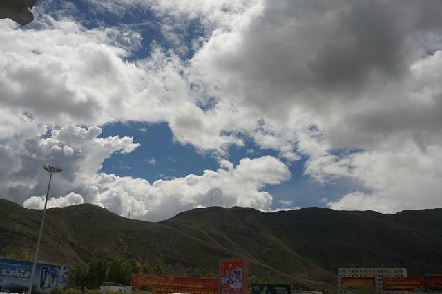 绵延起伏的山脉令人神往,当地的日照实在是令人不安,明明温度不高,却是晒的紧,阳光也极为刺目,附赠朋友们个小贴士,成功入藏的秘诀是齐备防晒霜、墨镜、面罩、氧气管、止痛片,此为经验之谈。