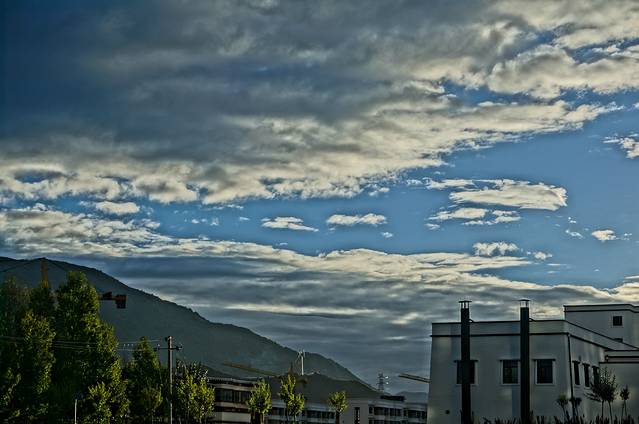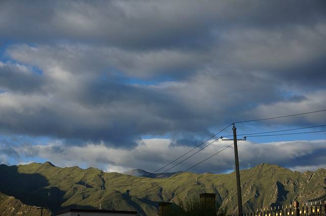 西藏的山总给人一种广漠的雄浑之感,低垂的云飘荡在山顶或者半山腰的位置,看多了心都跟跟着宽广了,仿佛再没什么闲事可以挂在心头。