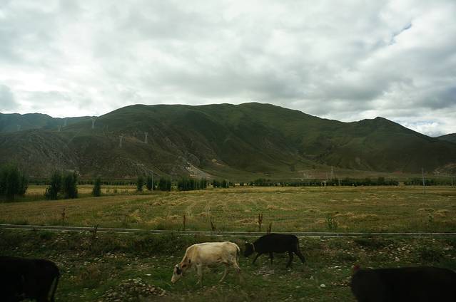 离了拉萨市区,省道上偶尔能看见这只能个低矮的小楼,很淳朴很乡村。