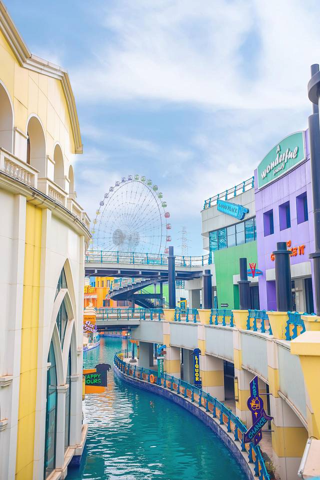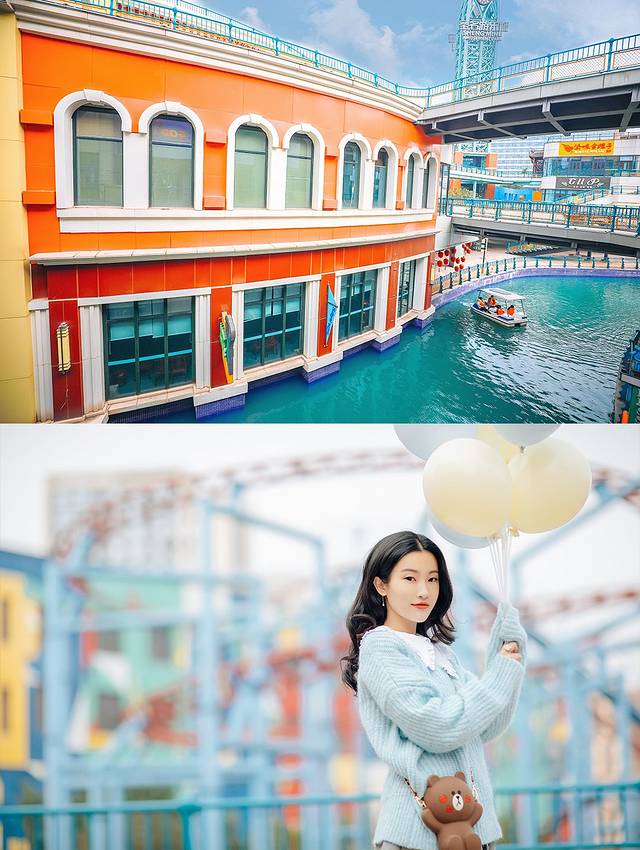 这个游乐场是开放的,进去不需要买票,然后如果要玩项目可以单独购票,也可以买通票,所以选择还是挺多,像我们这种去拍拍照的就完全可以免费啦!整个游乐场还蛮大的,感觉游乐设施没做起来,但是修建的时候修得色彩斑斓拍照还是很好看噢,这里还模仿威尼斯水城建起了一条水路,可以坐船玩,拍照也还不错咧,推荐给少女心的妹子们,拍少女感写真,带小朋友玩玩也