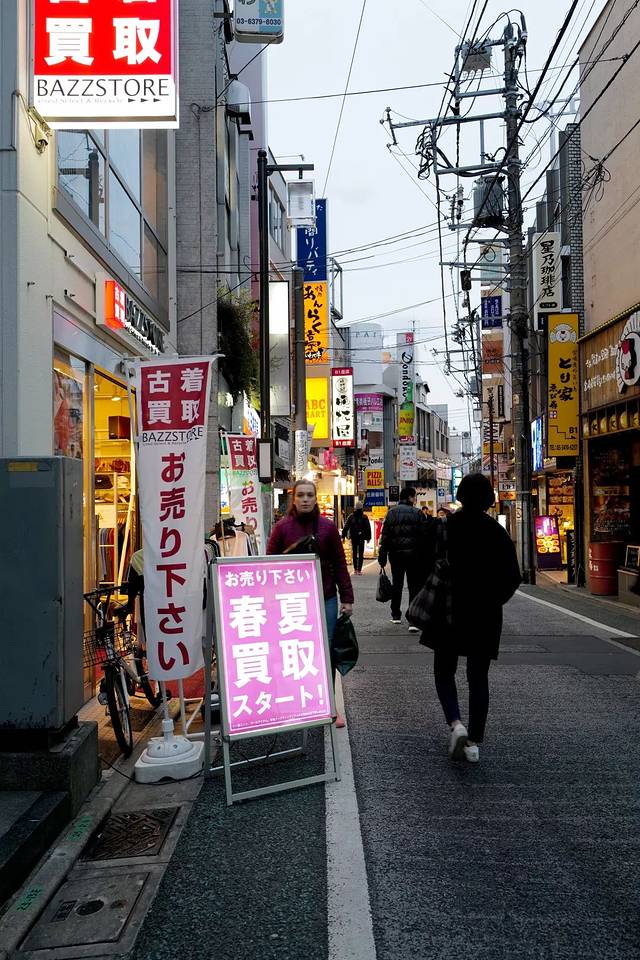第一次到下北泽会被地铁站门口的施工围栏所惊到,误以为这里停业了,但不要在意,听说这里施工好几年了,绕过围栏就是商业街区,众横交错的巷道,窄到汽车是开不进来的,漫无目的的走很容易就迷路,一时间在两条街道来回穿梭好几次,回过神来绕进一条小道,再出来又是一片新奇的热闹景象。
