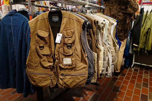 偶遇的这家FLAMINGO店面很大,不全是古着,也有很多全新的单品,以上世纪40 到 80 年代美式风格为主,贩售各种极具年代感的服饰和生活小物,众多的商品都是经过日本买手精挑剔选的,按照款式或面料整齐的陈列着。