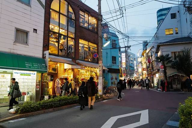 《Vogue》在2019年刊出了的全球15大最酷最潮街区,下北泽排第一。当然仅用潮和酷两个字形容下北泽是远远不够的,形形色色的古着店、黑胶唱片店、咖啡店、书店、小剧场、花店……上世纪50年代美式复古风在下北泽流行,70年代又涌现了一波音乐酒吧,再到后来小剧场的爆发,下北泽空气里就这样飘着令人迷失的文艺、摇滚、前卫的味道。