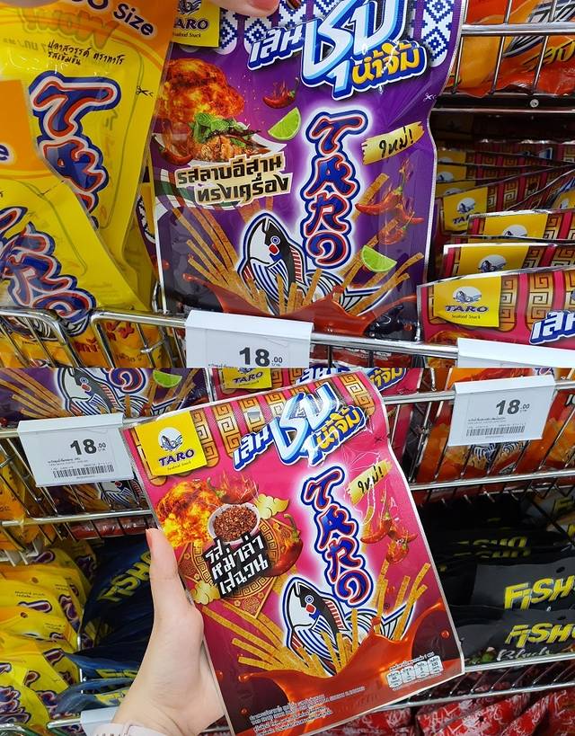 来泰国旅行的话必须得购买就是泰国零食啦,各式各样应有尽有。 而我最喜欢的也就是接下来要给大家介绍,那就是泰国TARO牌蘸酱味烤鱼丝啦, 最喜欢就是这种泰式传统风味的小零食了,充满着浓浓泰式辛辣味,浓郁可口。