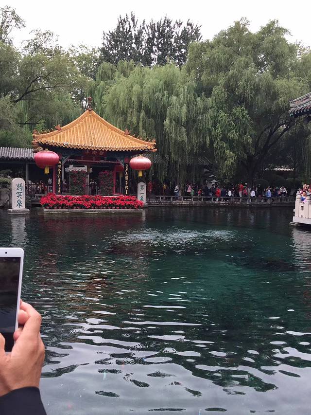 终于看到了趵突泉,赶快合个影,真的是人非常多啊,好不容易才找到个可以站一个人的地方,偏偏我们要站三个人,不过说实话,跟想象中德还是有差距的,没有想象的那么震撼,估计也是因为离得太远的原因吧