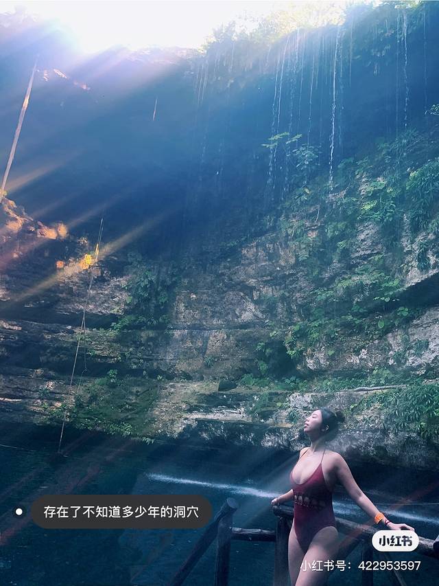 👧🏻报了个一日游跟着走的,所以记不清是叫什么名字的Cenote了,进去时候先发手环,然后凭手环去更衣室领柜子的钥匙🔑整个都特别狂野,更衣室房间的🪑都是树桩,要小心有蛛网。