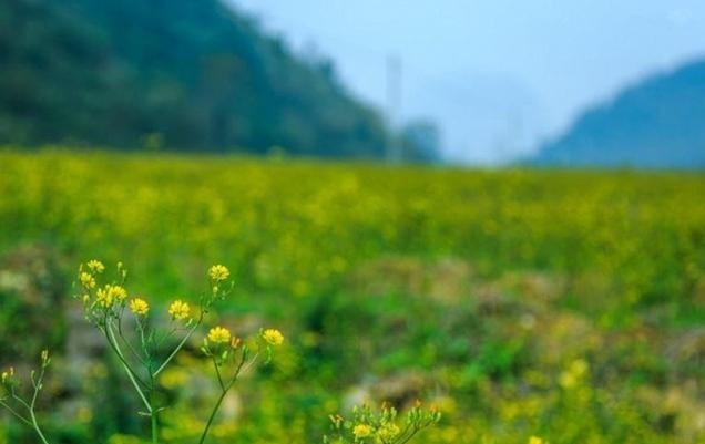 山脚下一片黄色的花海,很新鲜,很文艺