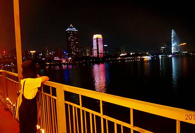 与夜灯光合影
