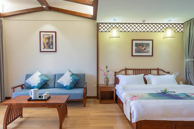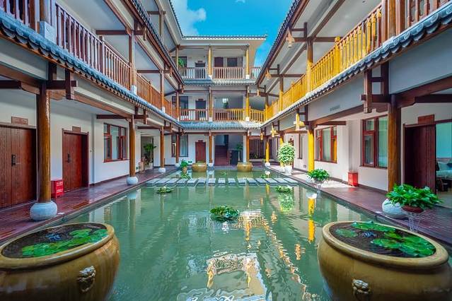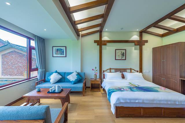 第一天坐高铁下站,店家已经帮忙预订接车的司机,很顺利的到了品乡阁合院门口,酒店是新修的,听老板介绍特意预订的,一进门就听见铺面凉意 流水叮咚 ,初夏的躁意微退,老板亲自帮忙办理入住 ,搬运行李送入房间,因为熟悉景区也没让老板多介绍景点 ,交谈转角便是开扩得中式四合院 ,流水潺潺,鱼戏莲叶东 鱼戏连夜西的景致跃然眼帘,乐趣盎然,诗情画意融入其中。踩着木地板进入房间,房间更是惊喜重重,中式家具的厚重,荷的淡雅 、禅意 、融入房间每一处。沙发软塌,温柔床间,大理石卫生间,智能马桶,按摩浴缸,落地窗外禅意茶几,眺望远方青龙山下,窗前荷叶田田,清荷遇山,满足了一个女生对浪漫的幻想,很开心能和男朋友一起度过美好的时光。也感谢彼此相识相遇。