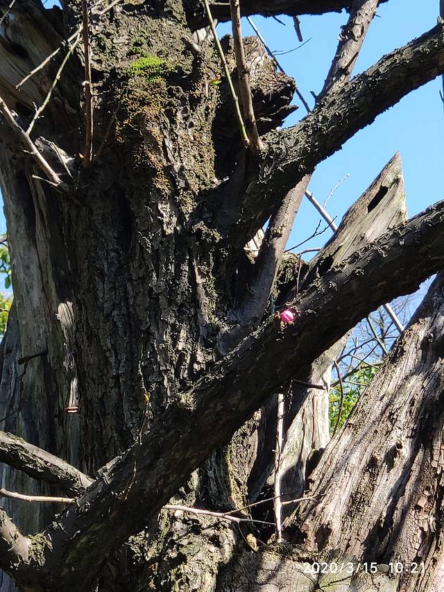 ★寻到了位于大明堂前方的年代久远的“唐梅 “宋梅””及“宋梅”树枝上唯一的一颗红色花蕊