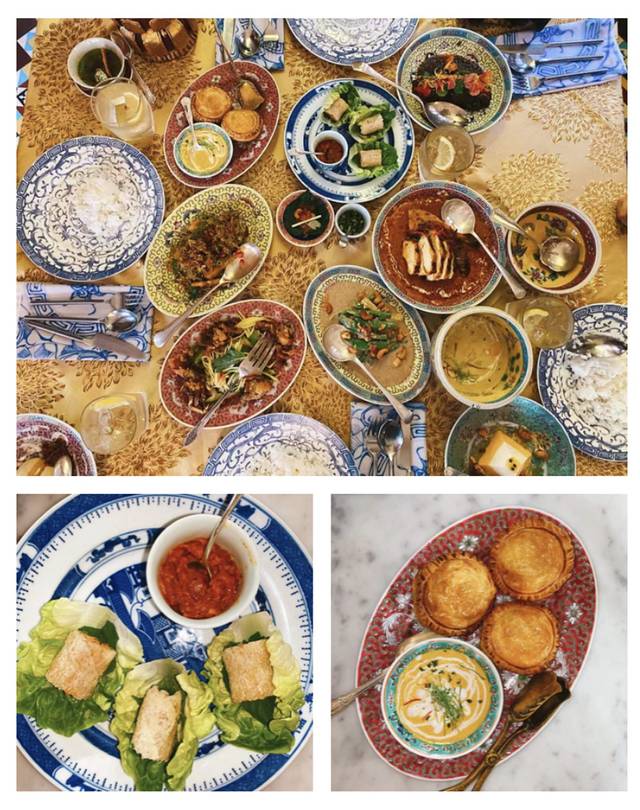 碟子上蓝色的叫兰花饭,是娘惹菜的特式