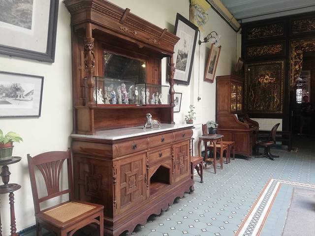 博物馆里很详尽的介绍了19世纪末峇峇和娘惹的生活方式,包括有服饰、结婚的新房、房屋的裝饰和物品摆设等,而我最欣赏就是当年的建筑物设计,包括整个房屋的透光度及通风设计