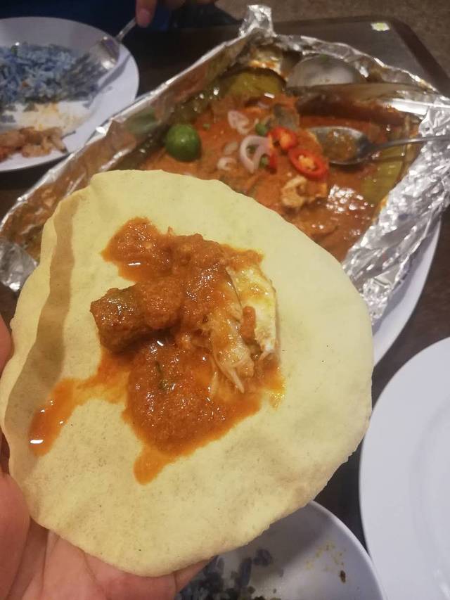 烤鱼的味道很香但有点浓,把鱼放在这片烤饼上,烤饼就会把过浓的味道吸收而均为了👍👍