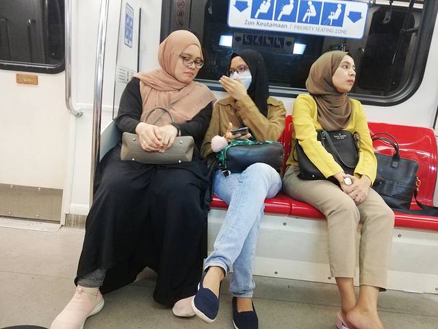 偷拍坐对面的几位马来美女,同时也看到在吉隆坡戴口罩的人也不多