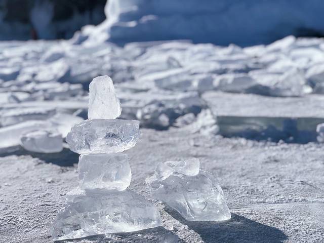 也有这样清澈透明的像宝石一样的冰块,足以见得这里的湖水有多清澈。