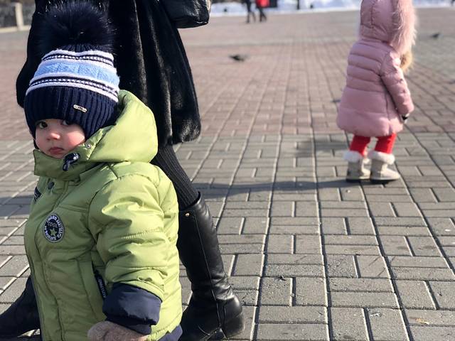 许多当地人带着小盆友到广场上看鸽子晒太阳, 俄罗斯 娃娃长的特别好看。