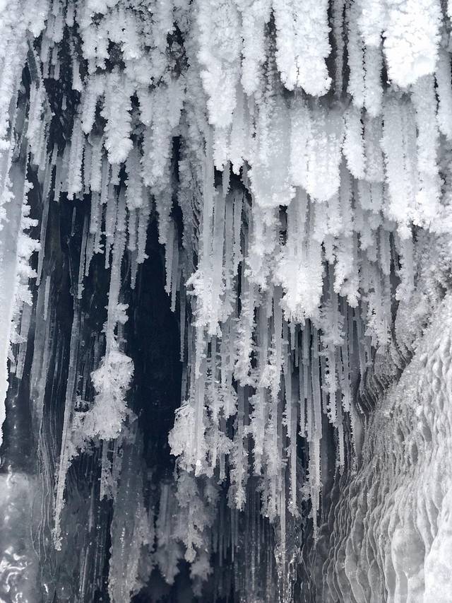 从溶洞里面往外拍也不错,比胳膊还粗的冰柱,舔一口舌头会冻上吗