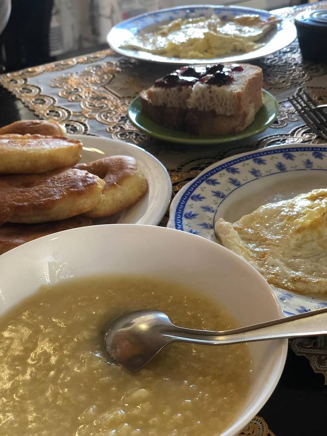 早餐是赠送的,味道意外的好吃。老板大叔早上起来现做的,粥和像甜甜圈的饼都是咸甜口的,却并不违和。草莓蓝莓果酱是自制的,前台还会有红茶包。这边红茶挺好喝。