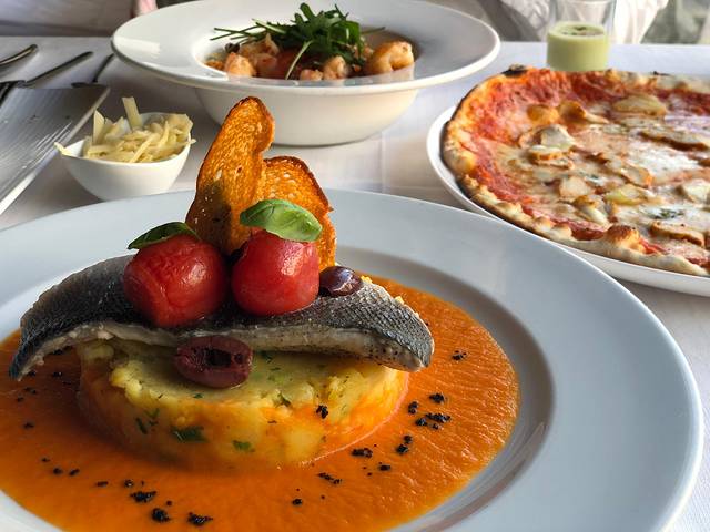 上菜了,看起来也不错也!炸贝尔加湖鲑鱼,红汤看起来都挺诱人。