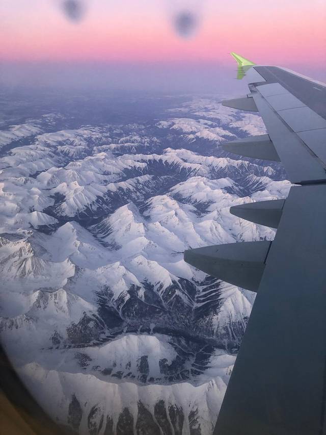 战斗民族的航班也是出了名的稳准狠。迎着日出,隐约听到大家都往窗外看,太美了!!!粉色的 朝阳 呼之欲出,眼下便是连绵到无边无际的冰川,甚至感觉贝加尔湖愈发近了。