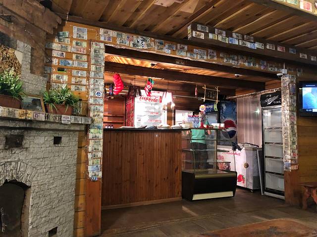 客人在店里墙上贴自己国家的纸币是当地的一种习俗,餐馆民宿里都看到过。