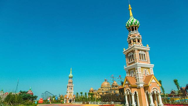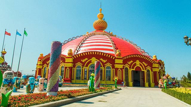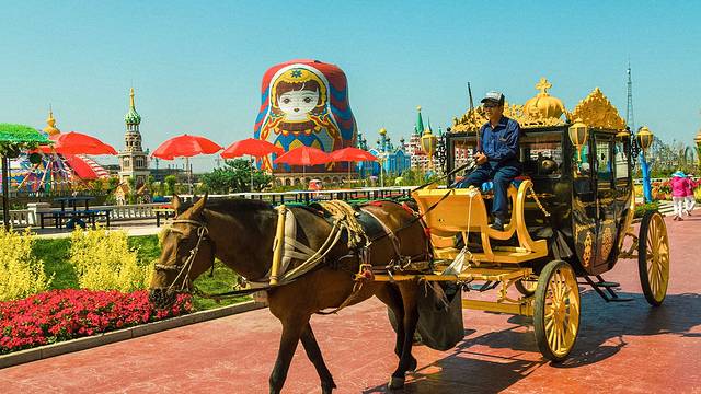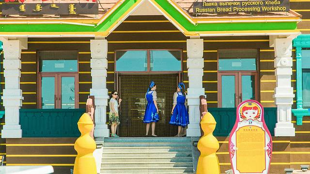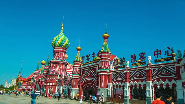 从市区前往国门或机场的路上都会经过这处造型夸张的 俄罗斯 风格建筑群,彩色的洋葱尖顶和巨大的套娃是这里最醒目的标志。景区内部可以游览的内容不多,大多数建筑物内都是千篇一律的纪念品商店,如果你不愿意再额外花钱去体验 俄罗斯 马戏(148~498 元)或俄蒙演艺西餐(138~298 元),在景区门口停留拍照是最具性价比的参观方式。
