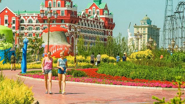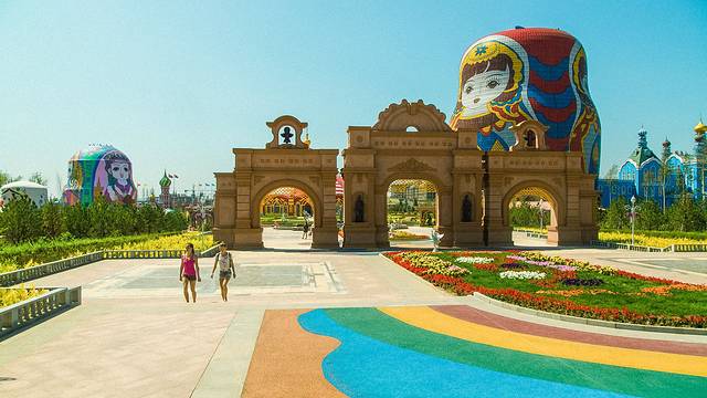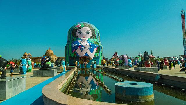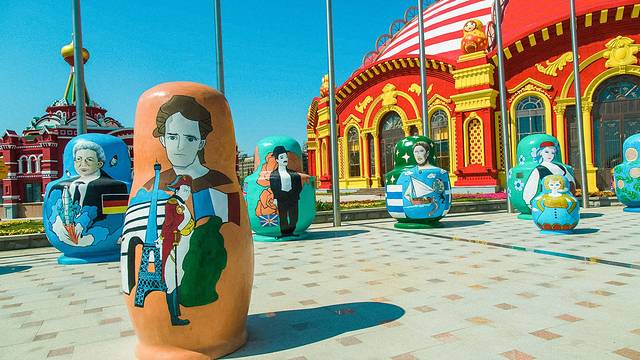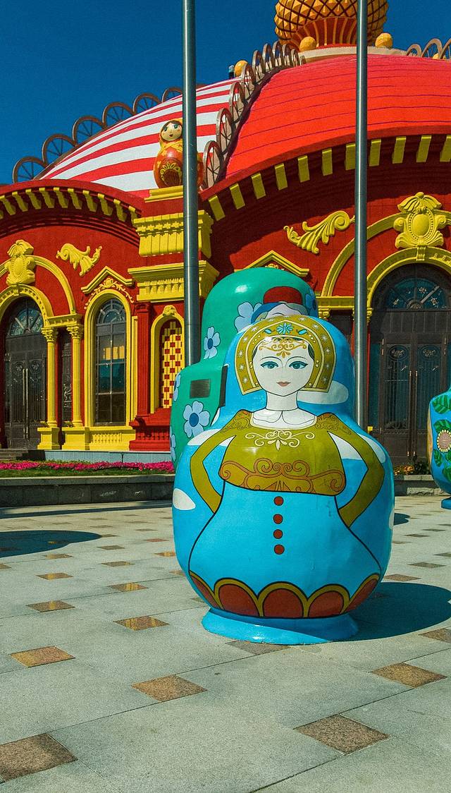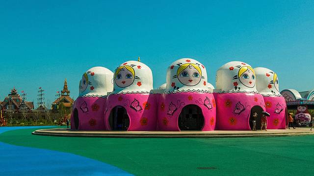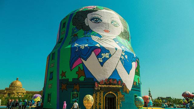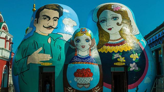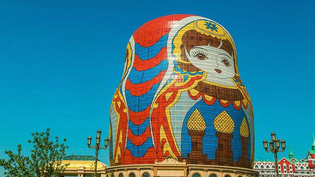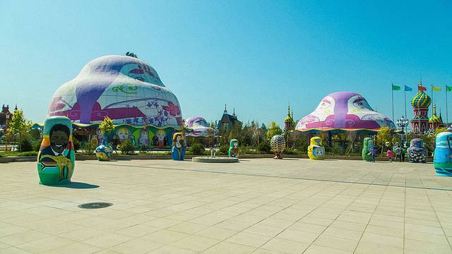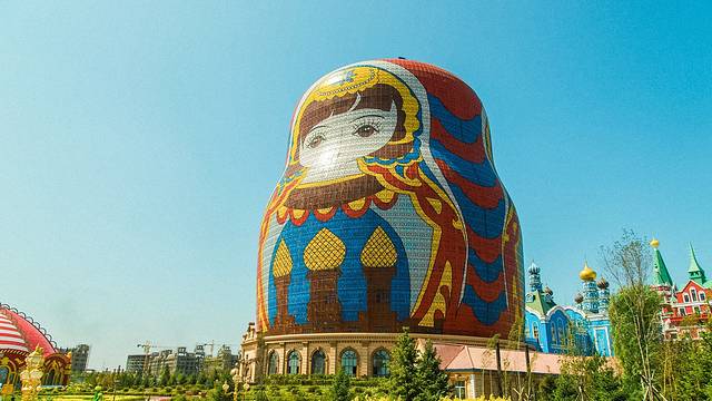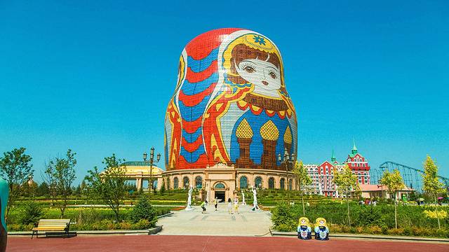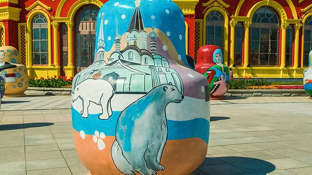 满洲里 市 俄罗斯 套娃景区景区具中、俄、蒙三国风情。 整个景区的规划面积是54万平方米,由 俄罗斯 套娃广场、 俄罗斯 艺术博物馆、 东欧 异韵风情园三部分组成。