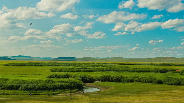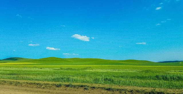 窗外,天苍苍野茫茫的景象,如此的真切,下车给他拥抱吧,融入他,走进他,这就是 呼伦贝尔 大草原