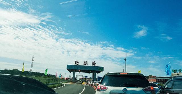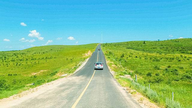 经过几个小时的行驶。,我们从野狐岭收费站下了高速,进入 草原天路 。