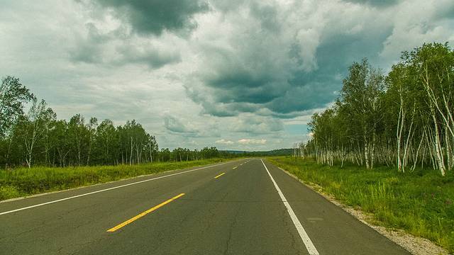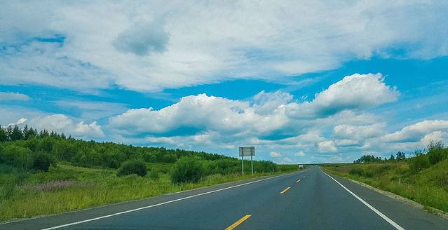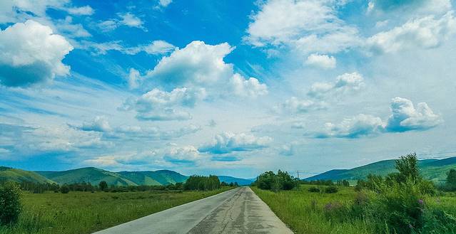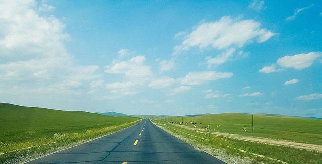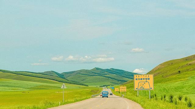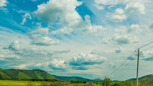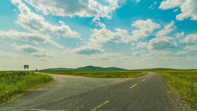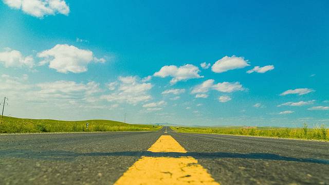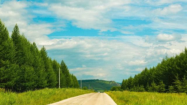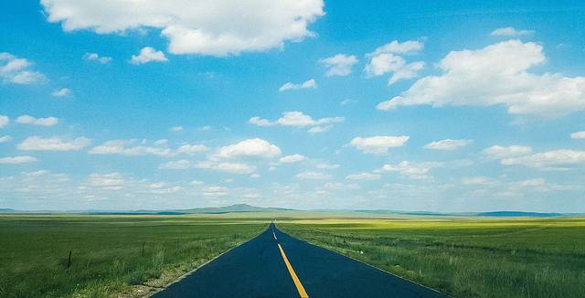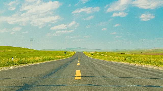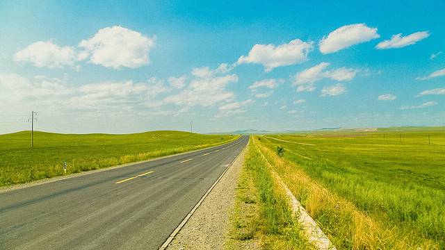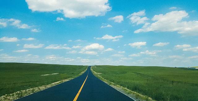蓝天白云公路向远方延伸,好像永远没有尽头。