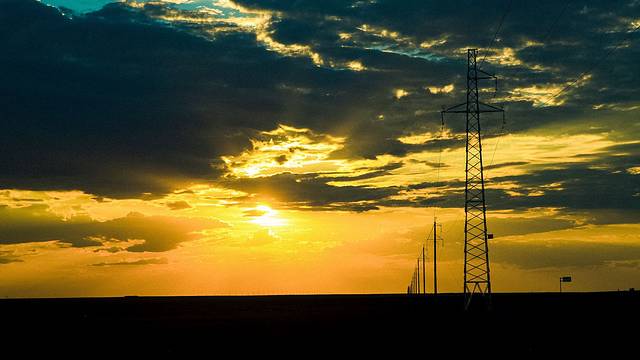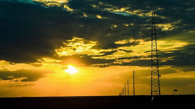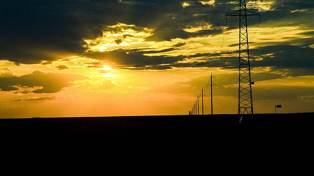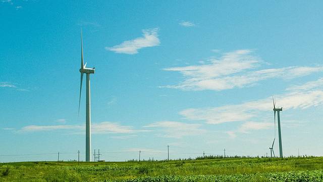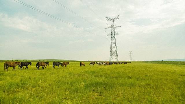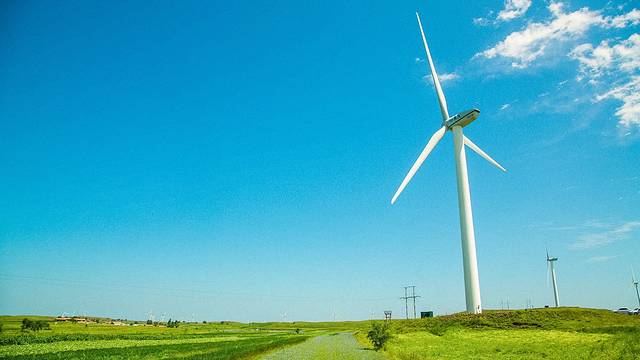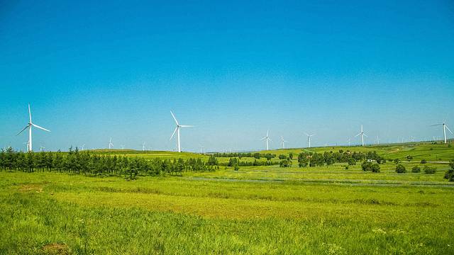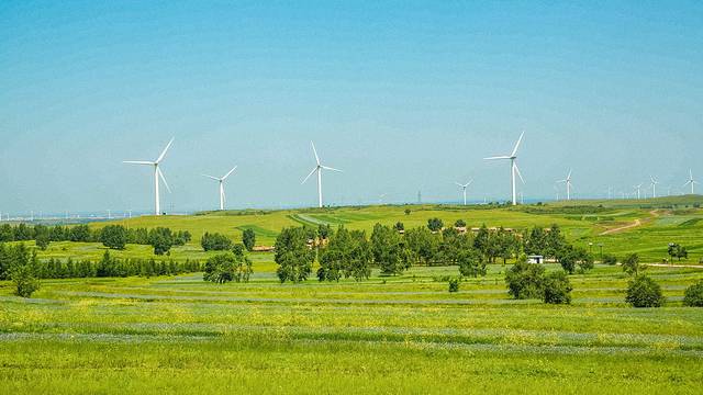 呼伦贝尔 大草原的风电。巨大的风车形成矩阵,也是一道亮丽的风景