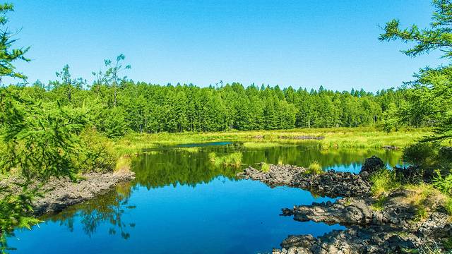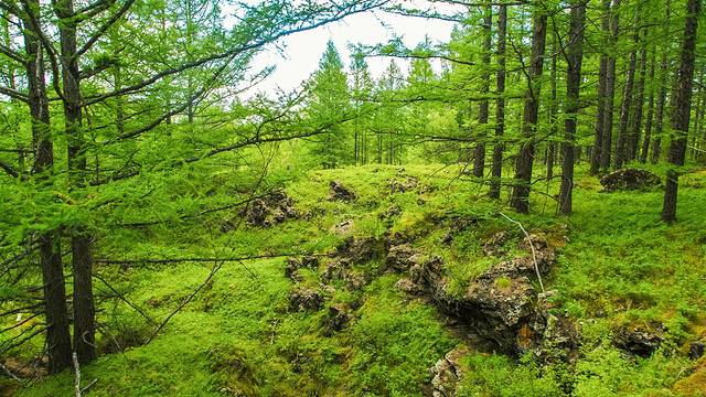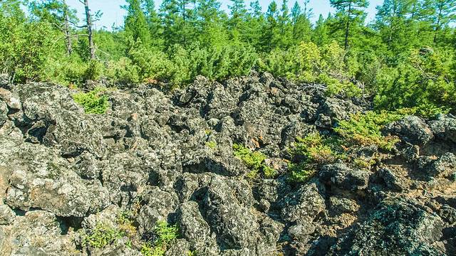石塘林是 阿尔山 森林公园里最壮观的一片火山地貌,面积之大、保存之完整堪称 亚洲 之最。石塘林的成因要追溯到第四世纪火山爆发:滚烫的岩浆流到哈 拉哈 河,经过凝结、风化,最终形成了怪石嶙峋的熔岩台地。整个质景观非常丰富,堪比天然的火山地质博物馆。