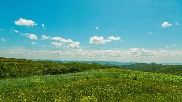 行驶在 草原天路 上,两边的风景,配合着蓝天白云,再一次深深的打动着我们