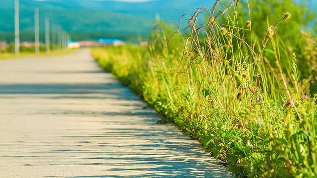 应该离 阿尔山 越来越近了,道路两旁开始出现的灌木,应该在不远的前方有着森林等着我们。
