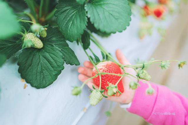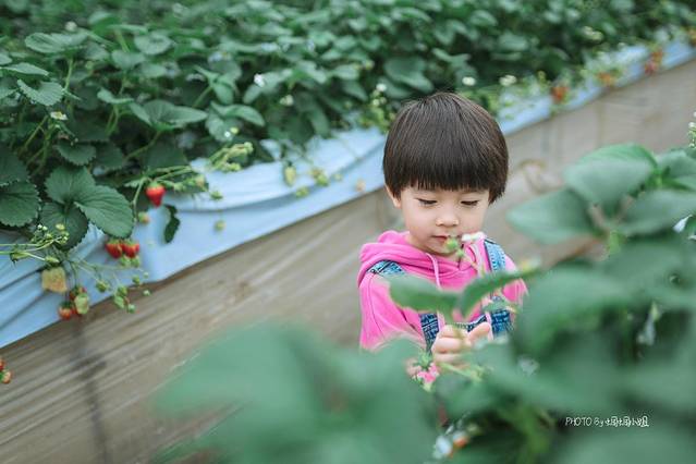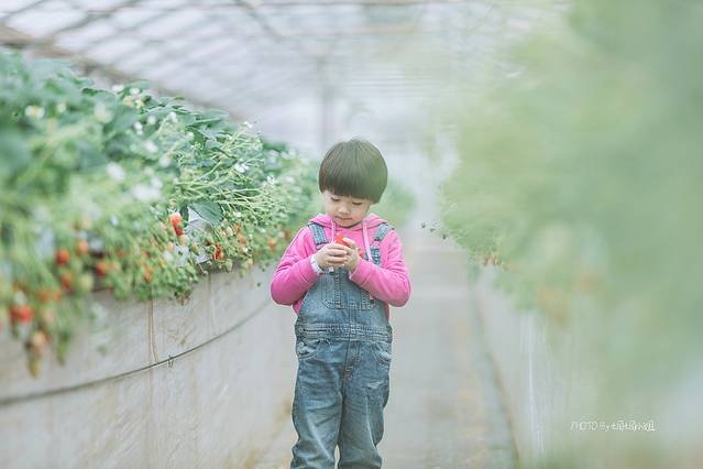 草莓摘不停,嘴里也塞不停,对于最爱吃草莓的小朋友来说,这里可真的是他的福地了。