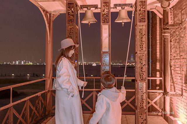相比于相爱的小情侣,我们的三口之家,也一样期待幸福钟的庇佑,于是,河马先生拍照,由叮当代劳,和我一起敲响那幸福钟,面对着 横滨 港的温暖夜色,许下我们2020农历新年的第一个愿望。