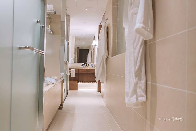 这里是一个小套间,在隔间外有准备了备用的毛巾和各种沐浴后的吹风机、卷发棒、护肤用品等等,相当贴心。