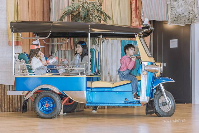 这个小车车是从 泰国 直送过来的「Tuk Tuk」,小男生,很主动的就坐到了驾驶室的位置,哈哈哈。