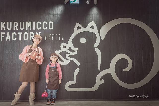 这家甜品店叫KURUMICCO FACTORY,是在 日本 很知名的一家甜品店,而我们学习做的,就是他家最驰名的小甜品,没有很好的中文翻译,我姑且叫它核桃蜜挞吧,就是我手上拿的那个小盒子。而那个报着榛果的大尾巴松鼠也是他家最具标识性的logo,可爱的小松鼠还会变换不同的动作,出现在我们不经意间的各种店内小细节里。