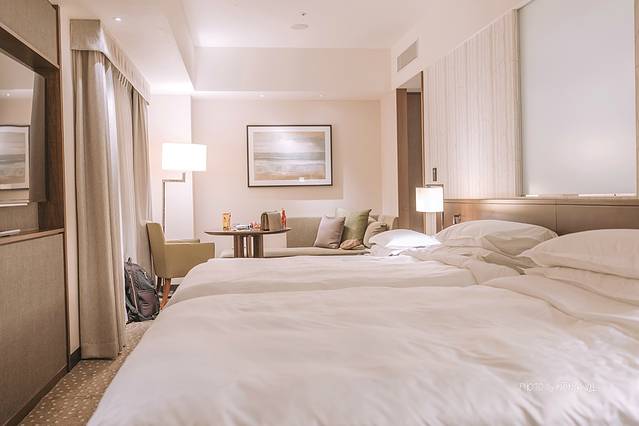 我们的房间,登记带小朋友入住的话会提供加床服务,但其实,即使不加床,房间本身也是一大一小的双床配置,34平的面积,在酒店房间小而精的 日本 ,觉得可以算相当舒适了。