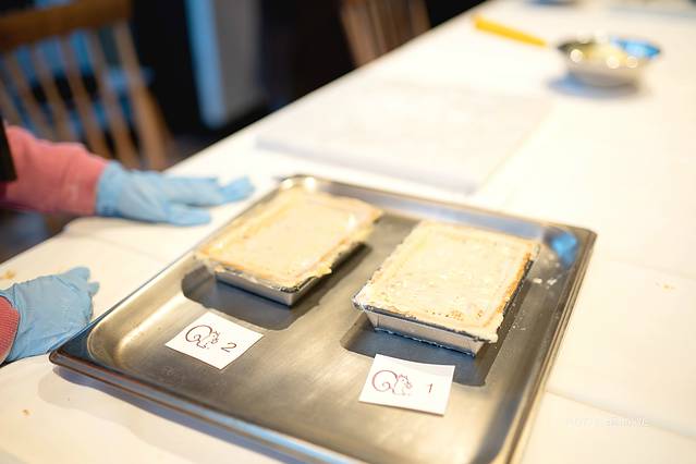 这次呢,老师为我们准备好了基础的原材料,只需要我们按照老师的示范,一步一步的将搅拌好的焦糖拌进面托烤制,我们的小甜品就做好啦~