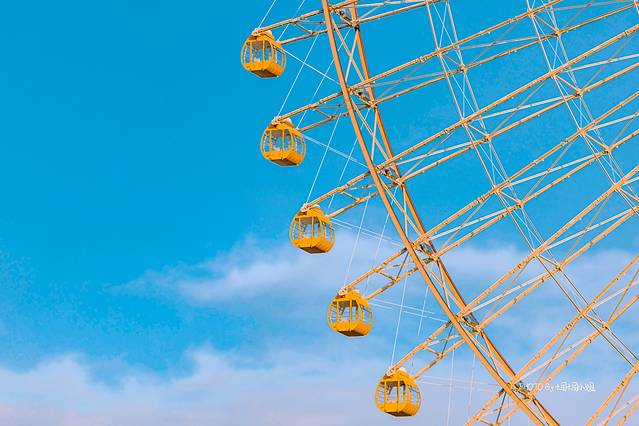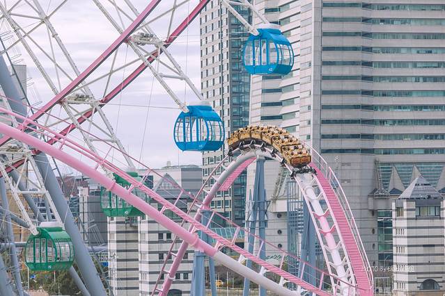 摩天轮不仅是观赏一城景观的最佳取景地,也是最能代表一个城市气质的元素吧,这座COSMO WORLD摩天轮,褪去那所谓的时钟型世界第一大摩天轮的外衣,晴空丽日下,一个个彩色的轿厢,我眼中,只有它日式动漫般的纯净与浪漫,一如海风拂面,这座城带给我们的第一印象,清秀、纯净。