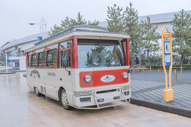 地铁搭乘海洋线,坐到八景岛站下车,就可以看到 横滨 八景岛海岛乐园的接驳车站,然后就可以坐着这台复古的接驳车轻松去到八景岛海洋馆了。