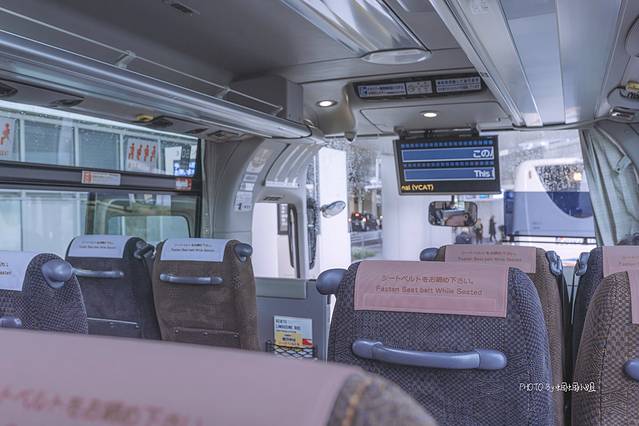 巴士内也很宽敞,半个小时的车程,坐起来很舒适,在这里友情提示,在 日本 乘坐交通工具,一定要扣好安全带哦,小朋友也一定要系。